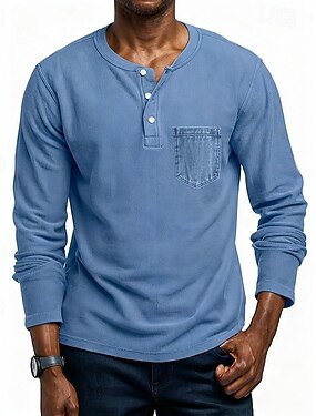 Per uomo Maglia Henley Camicia 100% cotone lavaggio acido Maglietta Manica Lunga Vintage Retrò Vintage Casual Angosciato Tasca Tinto in capo Sbiadito Henley Casuale Primavera Autunno Tutte le stagioni