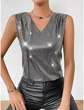 Per donna Canotta a canotta Paillettes Tinta unica Festa Elegante Senza Maniche Scollo a V Top Regolari Ferie Uscire Argento Oro Estate Primavera Autunno