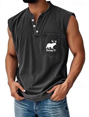 Per uomo Maglietta smanicata Camicia Demin Senza Maniche Henley Estate Grafico Semplice Moda Designer Essenziale Tinto in capo Sbiadito Lavaggio vintage Casuale Vacanza Streetwear Nero Verde scuro