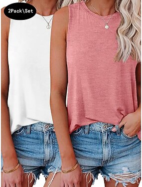 Confezioni multiple 2 pezzi Per donna Girocollo Senza Maniche Rosso - rosa Canotta Maglietta senza maniche Maglietta Tinta unica Casuale Quotidiano Poliestere Estate