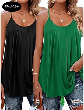 Confezioni multiple 2 pezzi Per donna Scollo a Cucchiaio Senza Maniche Verde / nero Canotta Maglietta senza maniche Maglietta Arricciato Semplice Casuale Quotidiano Poliestere Estate