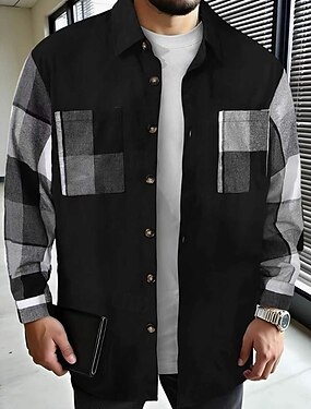 Per uomo Camicia Camicia di flanella Camicia a quadri Camicia con Bottoni Sopracamicia Giacca-camicia Quadri All'aperto Abbigliamento quotidiano Nero Manica Lunga Bavero Primavera & Autunno