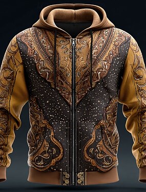 Per uomo Cowboy Costume Felpa con Cappuccio Giacca di pelle Felpa Cowboy Western Stampa su tutta la superficie Manica Lunga Con cerniera Vacanza Abbigliamento casual alla moda Marrone Verde Cachi