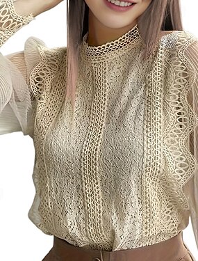 Per donna Blusa Pizzo Tinta unica Elegante Casual Manica Lunga Collo Alto Top Regolari Quotidiano Bianco Primavera Autunno