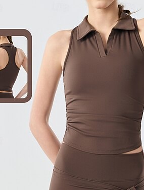 Per donna Tinta unita Maglia atletica Canotta Polo da tennis Senza Maniche Asciugatura Rapida Traspirante Tennis Badminton Pallavolo Colletto Polo Canotta Top Nero Abbigliamento da tennis