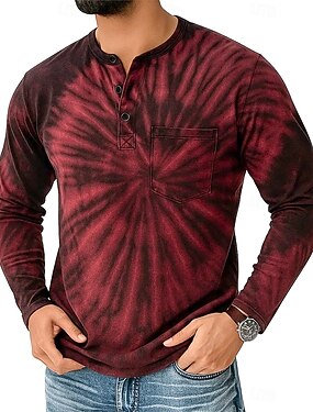 Per uomo Stampa Maglietta Maglia Henley Manica Lunga Designer Retrò Vintage Di tendenza Streetwear Casuale Quotidiano Estate Primavera Autunno Giallo Rosso Arancione Henley Maglietta Henley
