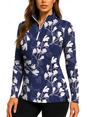 Per donna A righe Maglietta sportiva Maglia da tennis Manica Lunga Cerniera Floreale Pullover UPF50+ Resistente ai Raggi UV Alta elasticità Traspirante Pallavolo Tennis Golf Collo Alto Collo con zip