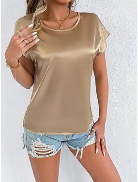 Per donna Raso/Satin Maglietta Tinta unica Elegante Manica Corta Manica a pipistrello Girocollo Top Regolari Quotidiano Uscire Verde primavera Nero Rosa Oro Estate Primavera