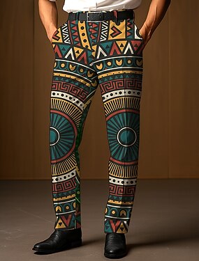 Per uomo Pantaloni Eleganti Pantaloni Pantaloni da Abito Geometrico Etnico Lunghezza intera All'aperto Casuale Retrò Vintage Verde scuro Blu scuro Micro-elastico