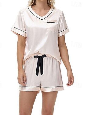 Per donna Abbigliamento da Casa Set Pigiama Moda Casual Morbido Colore Puro Patchwork Pantalone Vestiti Shorts Casa Vacanza Manica Lunga Scollo a V Nero Champagne Rosa Vino Blu scuro Estate Primavera