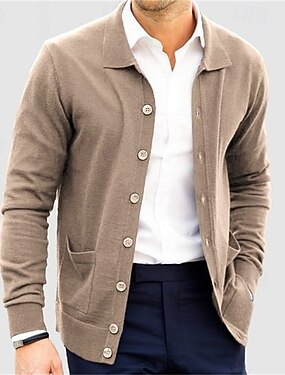 Per uomo Cardigan Maglione A coste Maglia Standard Lavorato a maglia Liscio Risvolto sciallato Top caldi Contemporaneo moderno Da tutti i giorni Per uscire Abbigliamento Autunno inverno Nero Bianco M