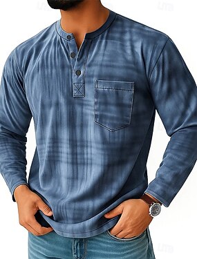 Per uomo Vintage Maglia Henley Maglietta Manica Lunga Retrò Vintage Casual Casuale Primavera Autunno Tutte le stagioni Blu Rosso Viola Marrone Verde Henley Maglietta Henley