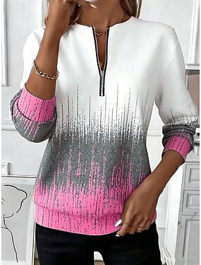 Per donna Felpe con cerniera Cerniera Stampato Grafico Geometrico Moda Casual Manica Lunga Girocollo Top Regolari Streetwear Abbigliamento Quotidiano Blu Rosa Verde Estate Primavera Autunno