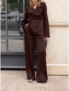 Per donna Set da due pezzi Set di Pantaloni Manica Lunga Scollo a V Semplice Avvolgere Elegante Moda Streetwear Casuale Quotidiano All'aperto Nero Marrone Estate Vestibilità regolare