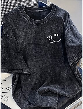 Per donna 100% cotone Maglietta Camicia di cotone Top lavati effetto vintage Semplice Vintage Moda Elegante Manica Corta Girocollo Top Regolari Casuale Quotidiano Uscire Blu Grigio / Bianco Verde