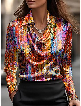 Per donna Camicia Arricciato Drappeggiato Ombre Grafico Elegante Casual Manica Lunga Scollo a Cascata Top Regolari Quotidiano Lavoro Abbigliamento da sera Blu Giallo Viola Arancione Estate Autunno