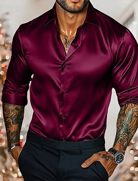 Per uomo Camicia Camicia in raso Maglietta informale Camicia con bottoni Liscio Matrimonio Da mare Nero Rosso Blu reale Verde Manica lunga Colletto Autunno Primavera estate Abbigliamento