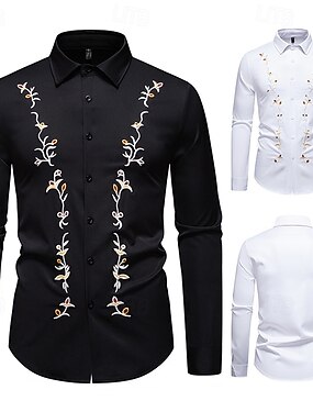 Per uomo Camicia Camicia elegante Camicia con Bottoni Camicia ricamata Semplice Formale Matrimonio Nero Bianco Manica Lunga Bavero Primavera Autunno Abbigliamento Ricamo