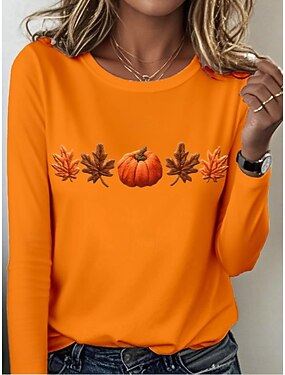 Per donna Maglietta Stampato Grafico Piante Vintage Elegante Classico Manica Lunga Girocollo Top Regolari Quotidiano Blu Nero Arancione Grigio scuro Grigio Primavera Autunno Inverno