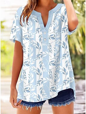 Per donna Camicia Camicia casual Camicia da Spiaggia Blusa Stampato Floreale Grafico Bohemien Elegante Moderno Manica Corta Scollo a V Top Regolari Quotidiano Ferie Uscire Blu Bianco Azzurro Estate