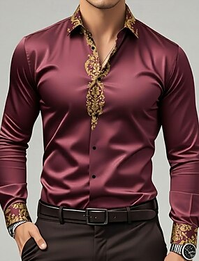 Per uomo Floreale / Fiore Rosa Camicia in raso Camicia elegante Camicia con Bottoni Manica Lunga Moda Casual Matrimonio Vacanza Festa serale Estate Primavera Collo ripiegato Camicie con Colletto