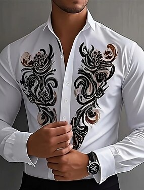 Per uomo Camicia elegante Camicia button-down Camicia con Colletto Floreale Matrimonio Lavoro Vinaccia Nero Bianco Blu marino Manica Lunga Collo ripiegato Primavera & Autunno Abbigliamento Bottonato