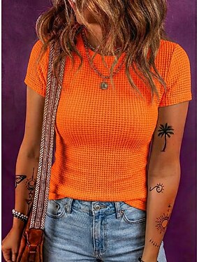 Per donna Maglietta Waffle Maglietta Tinta unica Elegante Casual Manica Corta Girocollo Top Regolari Quotidiano Uscire Abbigliamento da vacanza Nero Bianco Giallo Arancione Verde Estate Primavera