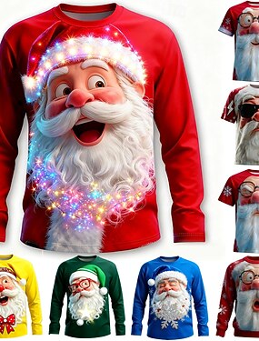 Natale Per uomo Babbo Natale Divertente Maglietta Manica Lunga maglietta Stampa 3D Girocollo Camicia Moda Essenziale 3D Casuale Quotidiano Streetwear Blu Giallo Rosso Estate Primavera Abbigliamento S