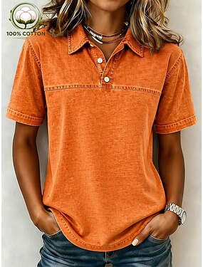 Per donna Maglia Henley Lavaggio acido Lavaggio vintage Tinta unica Vintage Moda Elegante Manica Corta Colletto a Camicia Top Regolari Casuale Spiaggia Blu Giallo Rosa Viola Arancione Estate Primavera