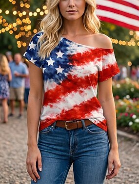 250° anniversario USA Retrò Vintage Anni '80 T-shirt Monospalla Maniche corte Bandiera USA Costume Per donna 4 Luglio Giorno dell'Indipendenza Adulti Maglietta