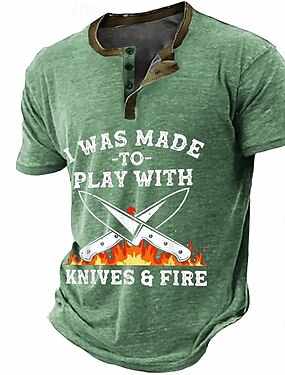 Per uomo Divertente Maglietta Maglia Henley Manica Corta Designer Retrò Vintage Henley Casuale Quotidiano Streetwear Estate Primavera Verde Blu marino Grigio scuro Henley Maglietta Henley