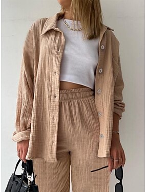 Per donna Set da due pezzi Camicia di cotone Set di Pantaloncini Manica Corta Colletto a Camicia Semplice Moda Streetwear Casuale Quotidiano All'aperto Nero Avorio Rosa Estate Vestibilità regolare