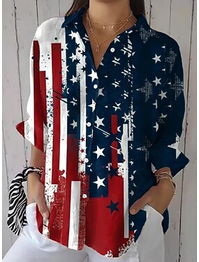 Giorno dell'Indipendenza Americana Per donna Camicia Arricciato Floreale Grafico Bandiera Vintage Elegante Manica Corta Manica Lunga Manica a Volant Manica a Campana Colletto a Camicia Top Regolari