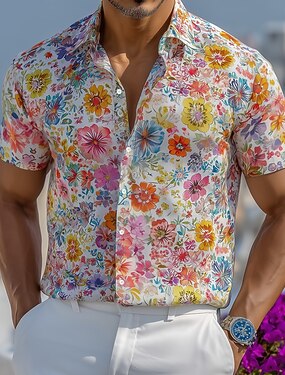 Per uomo Colorato Stampa Floreale Fiori tropicali Camicia Camicia hawaiana estiva Camicie tropicali Manica Corta Hawaiano Resort Vacanza al Mare Estate Primavera Collo ripiegato Stampa 3D Camicie con