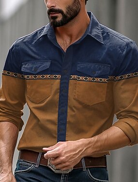 Per uomo Cowboy Camicia Western Camicia con Bottoni Camicia da cowboy Manica Lunga Casual Stile Western Quotidiano Formale Ferie Primavera & Estate Autunno Inverno Collo ripiegato Camicie con Colletto