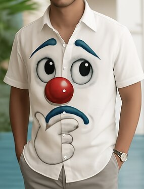 Per uomo Cartoni animati Grandi occhi Camicia Camicia Estiva Camicia con Bottoni Manica Corta Divertente All'aperto Vacanza Abbigliamento Quotidiano Estate Primavera Collo ripiegato Stampa 3D camicie
