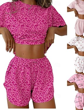 Per donna Set Pigiama Casual Comfort Cuore Lettera Elastico in vita Shorts Quotidiano Casa Manica Corta Girocollo Rosa chiaro Bianco Rosa Fucsia Grigio Estate Primavera Vestibilità regolare