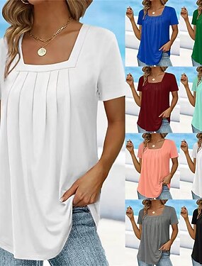 Per donna Maglietta Semplice Moda Moderno Casual Manica Corta Collo quadrato Top Regolari Quotidiano Weekend Nero Bianco Rosa Grigio Estate Primavera