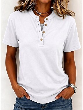 Per donna 100% cotone Maglietta Bottoni Davanti Semplice Elegante Classico Manica Corta Henley Top Regolari Casuale Quotidiano Weekend Blu Nero Bianco Rosa Verde Estate Primavera