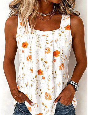 Per donna Canotta Stampato Floreale Grafico Piante Vintage Elegante Classico Senza Maniche Collo a U Top Regolari Casuale Quotidiano Uscire Bianco Rosso Arancione Estate Primavera