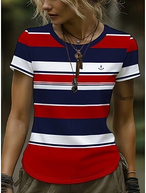 Giorno dell'Indipendenza Americana Per donna Maglietta Stampato Grafico Bandiera Lettera Vintage Elegante Classico Manica Corta Girocollo Top Regolari Quotidiano Blu Cenere Nero Bianco Estate