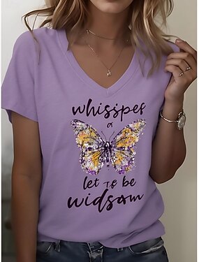 Per donna Maglietta Stampato Grafico Libellula Vintage Elegante Classico Manica Corta Scollo a V Top Regolari Quotidiano Viola chiaro Viola Arcobaleno Estate Primavera