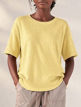 Per donna Maglietta Top a maglia waffle Tinta unica Elegante Classico Moderno Manica Corta Girocollo Top Regolari Casuale Quotidiano Uscire Nero Bianco Giallo Rosa Vino Estate Primavera