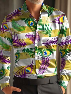 Martedì grasso Per uomo Paisley Carnevale Maschera con piume Camicia Camicia in raso Camicia elegante Manica Lunga Moda Casual Feste Ferie Estate Primavera Collo ripiegato Stampa 3D Camicie con