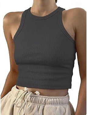 Top Canotta Donna Semplice Senza Maniche Regolari Spalline Bianche Marroni Grigie Estate