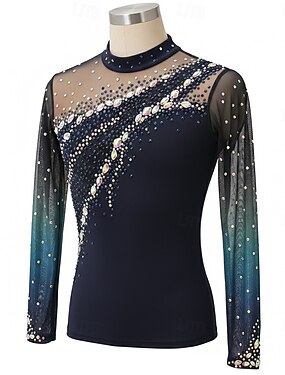 Maglia da pattinaggio artistico Per uomo Pattinaggio sul ghiaccio Top Blu marino scuro Patchwork Elasticizzato Allenamento Competizione Vestiti da pattinaggio sul ghiaccio Classico Cristallo / Strass