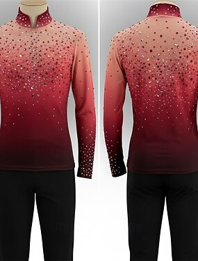 Costumi da pattinaggio artistico per ragazzi e uomini, ad alta elasticità, per allenamento e competizione, classici, con cristalli/strass, a maniche lunghe, per pattinaggio artistico sul ghiaccio,