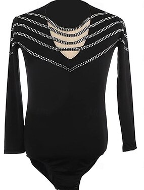 top da pattinaggio artistico nero elastico da allenamento, da competizione, termico, caldo, con cristalli/strass, manica lunga, pattinaggio artistico sul ghiaccio