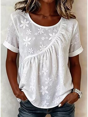 Per donna Top estivi Blusa Top traforato Top in pizzo Arricciato Pizzo Patchwork Floreale Semplice Elegante Vintage Signore Manica Corta Scollo a V Top Regolari Quotidiano Lavoro Ferie Bianco Estate