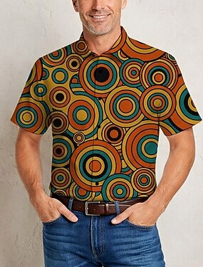 Retrò Vintage Hippie Anni '70 Camicia Maniche corte Hippie Geometrico Retrò Cerchio Costume Per uomo Festival Musicale Feste Abbigliamento quotidiano Adulti Camicia Primavera & Estate